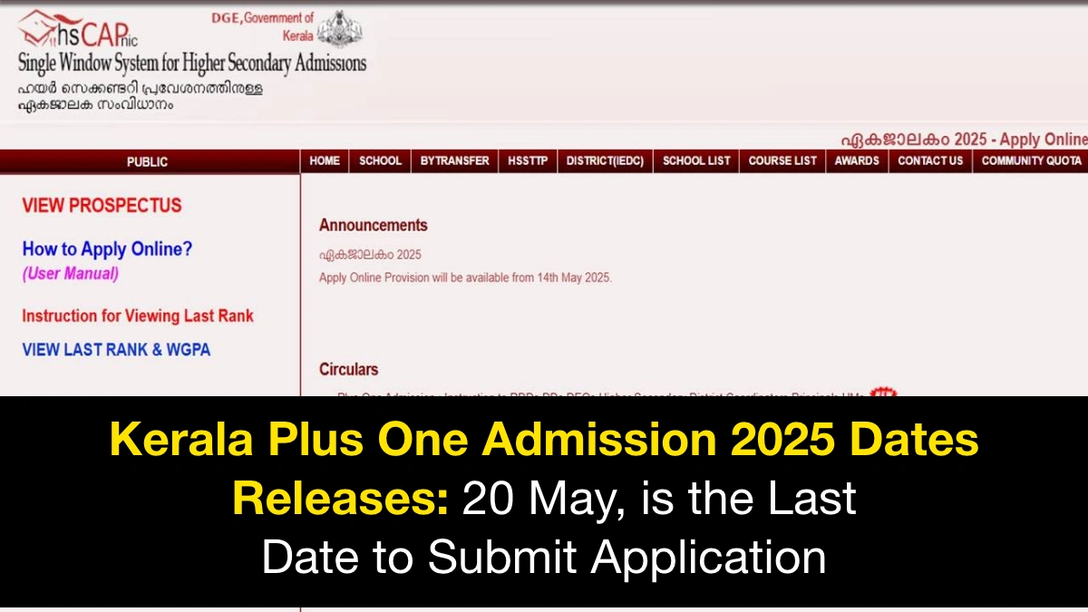 Kerala Plus One Admission 2025 Dates Release: 20 May is the Last Date to Submit the Application